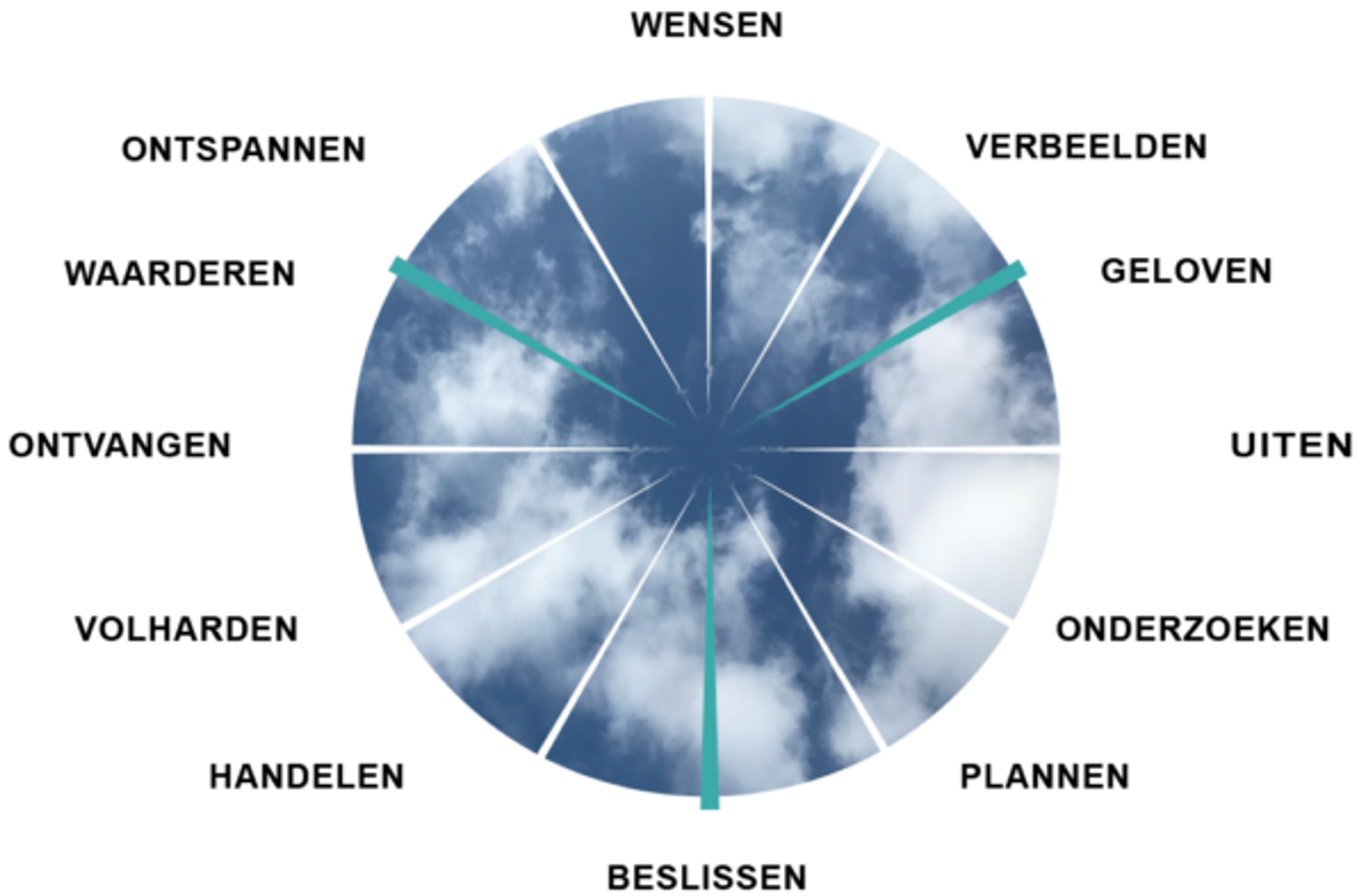 The next step is to apply the Creation Spiral, a model that shows you how to turn your wish or idea into reality in twelve simple steps. The spiral helps you to work in a structured way, from the initial wish to a concrete project plan.