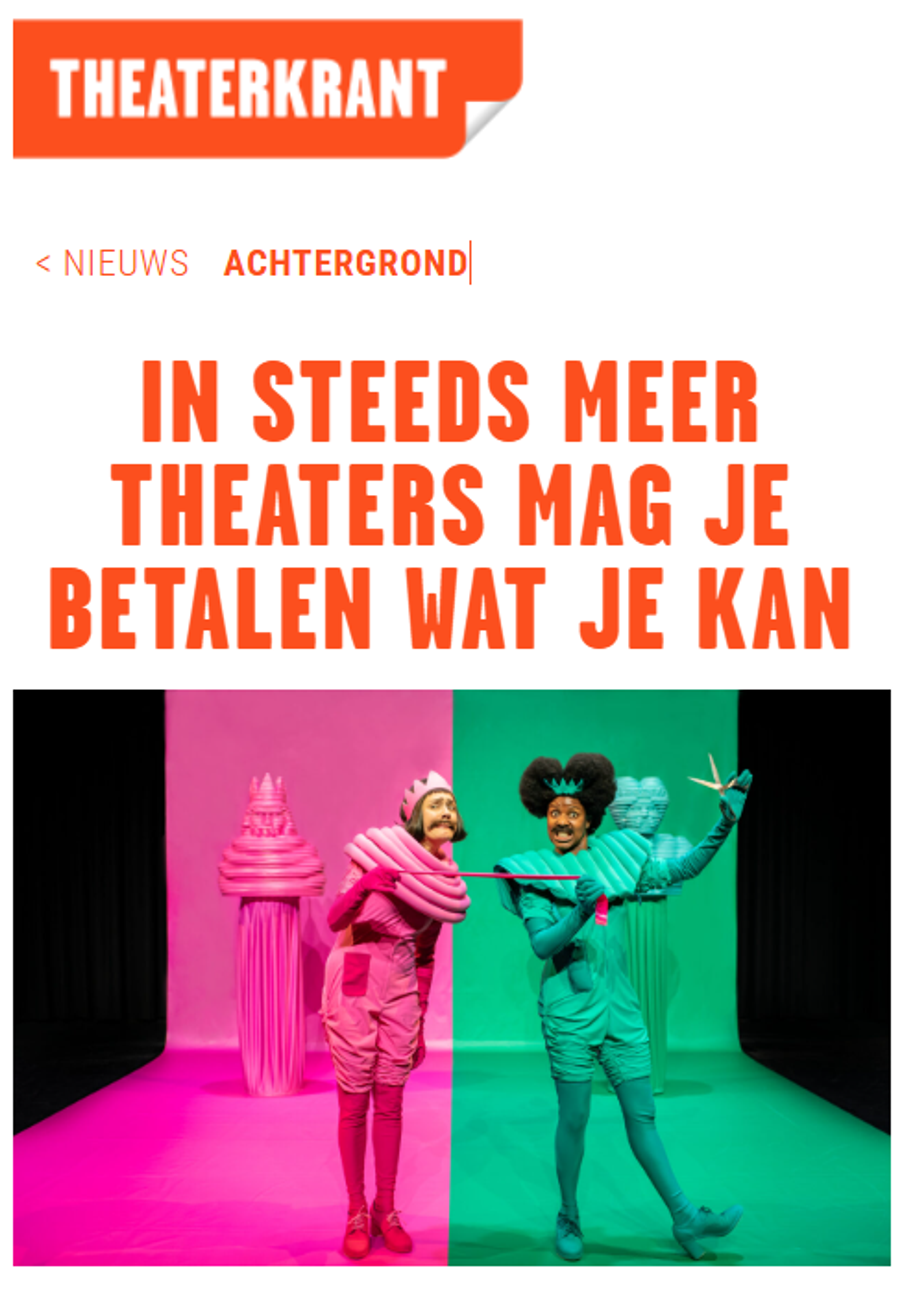 Een bijzondere vorm van directe inkomsten is waardebepaling achteraf: je laat het publiek na afloop zelf bepalen wat ze willen betalen. Dat kan verrassend goed uitpakken, zeker als je kwaliteit levert en inspeelt op het moment. Denk bijvoorbeeld aan een theatergroep die een try-outreeks organiseert in een huiskamersetting. Bezoekers kunnen achteraf contant of digitaal bijdragen wat zij het waard vinden. Nadeel: je kunt vooraf niet goed inschatten wat je opbrengst zal zijn, en dat maakt het lastig in je begroting.